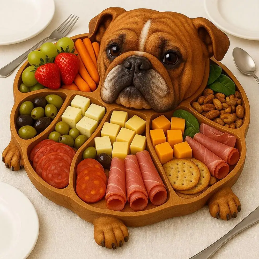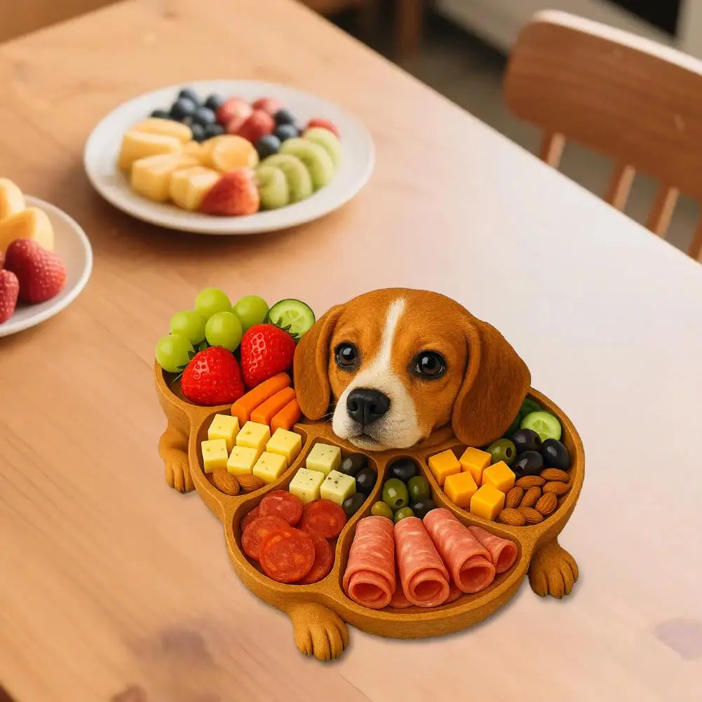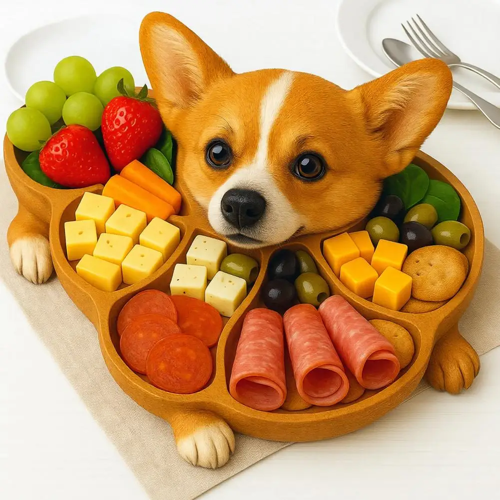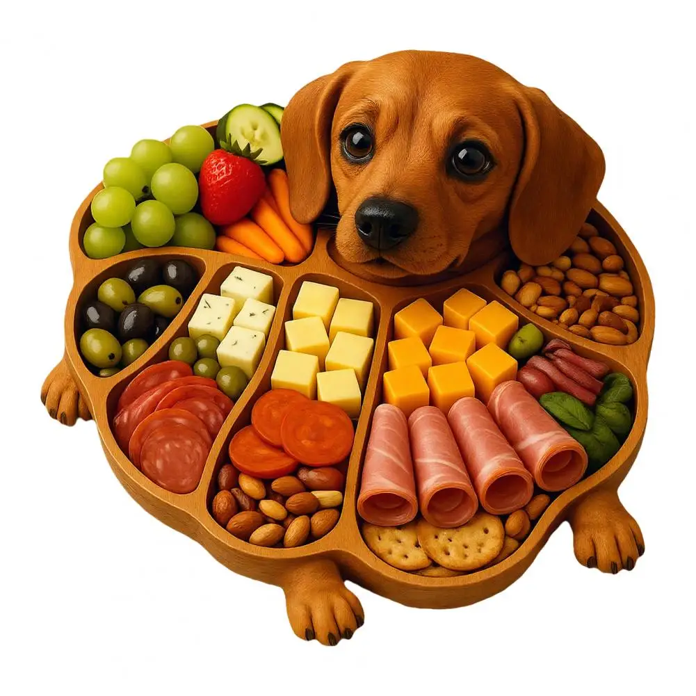 Rustic Dog Shape Wooden Tray - Multi-Compartment Serving Board for Cheese & Fruit