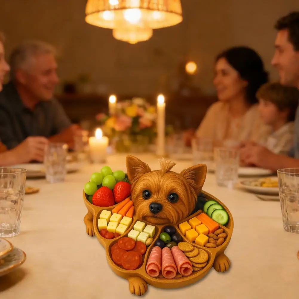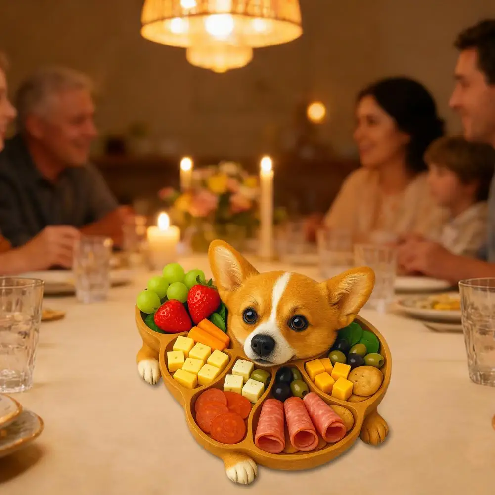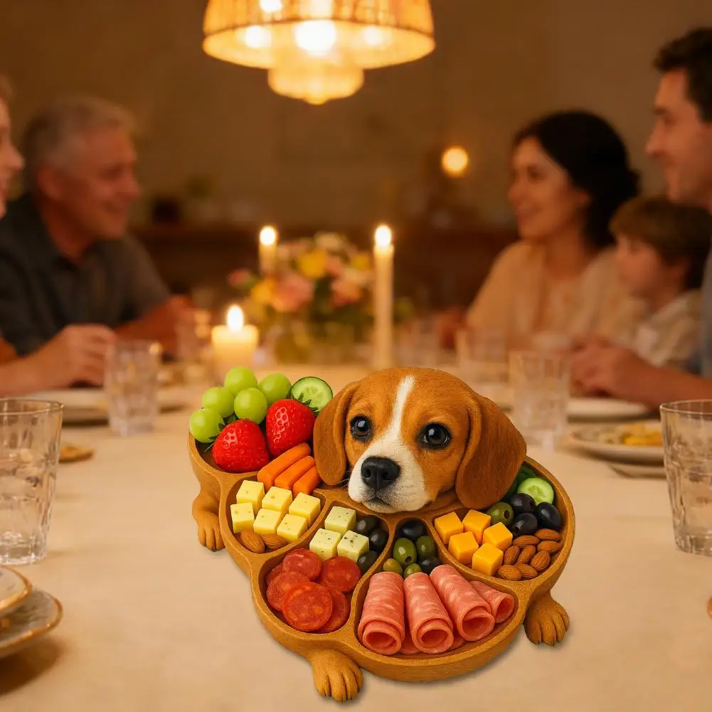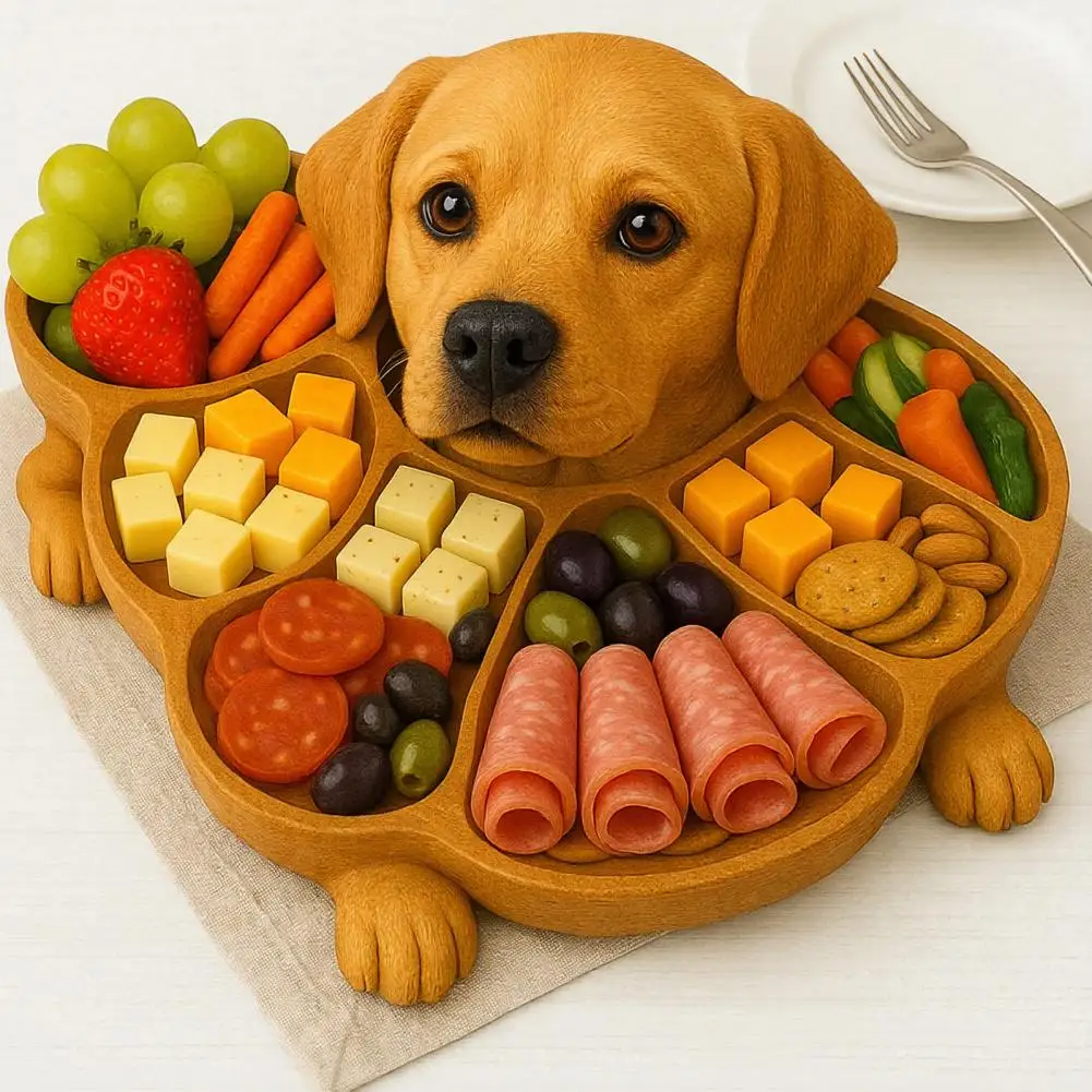 Rustic Dog Shape Wooden Tray - Multi-Compartment Serving Board for Cheese & Fruit