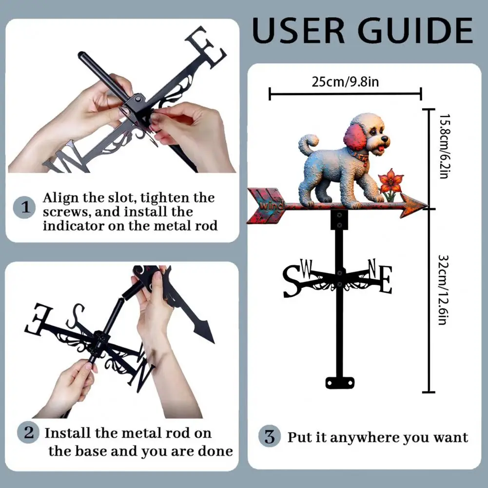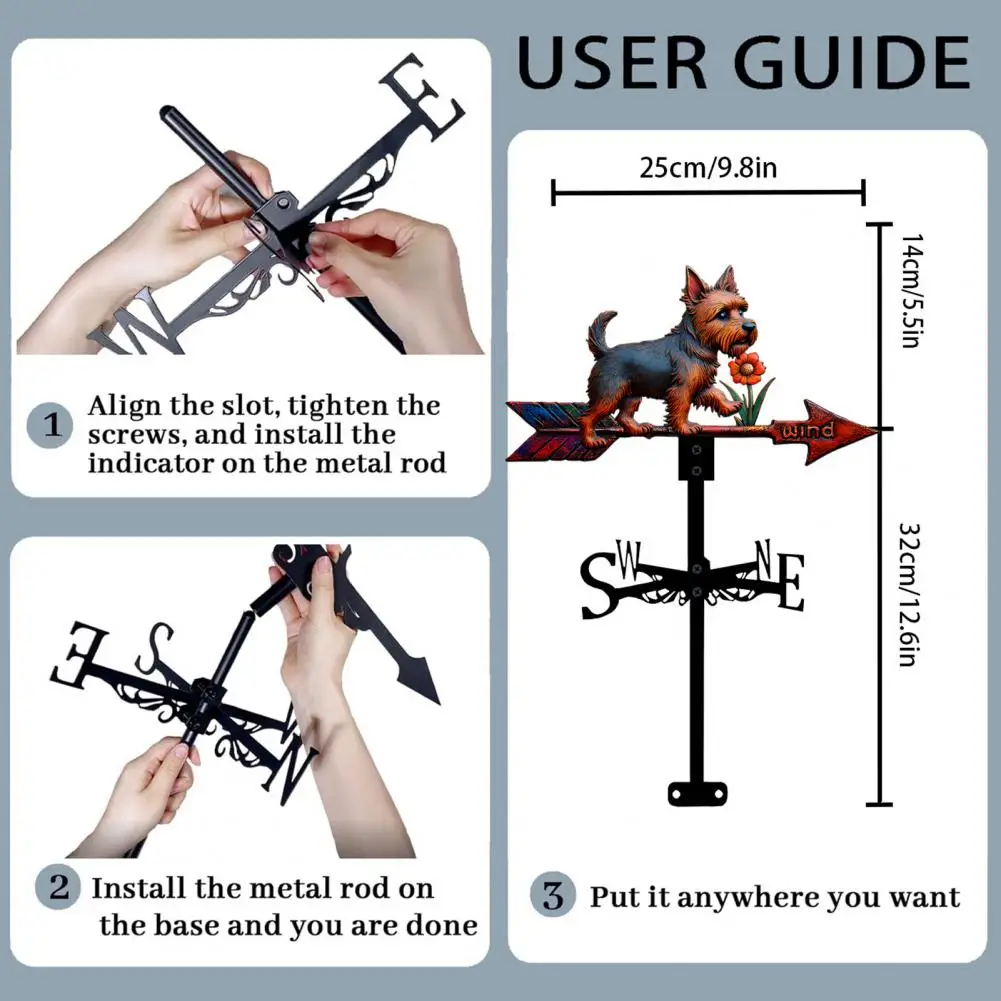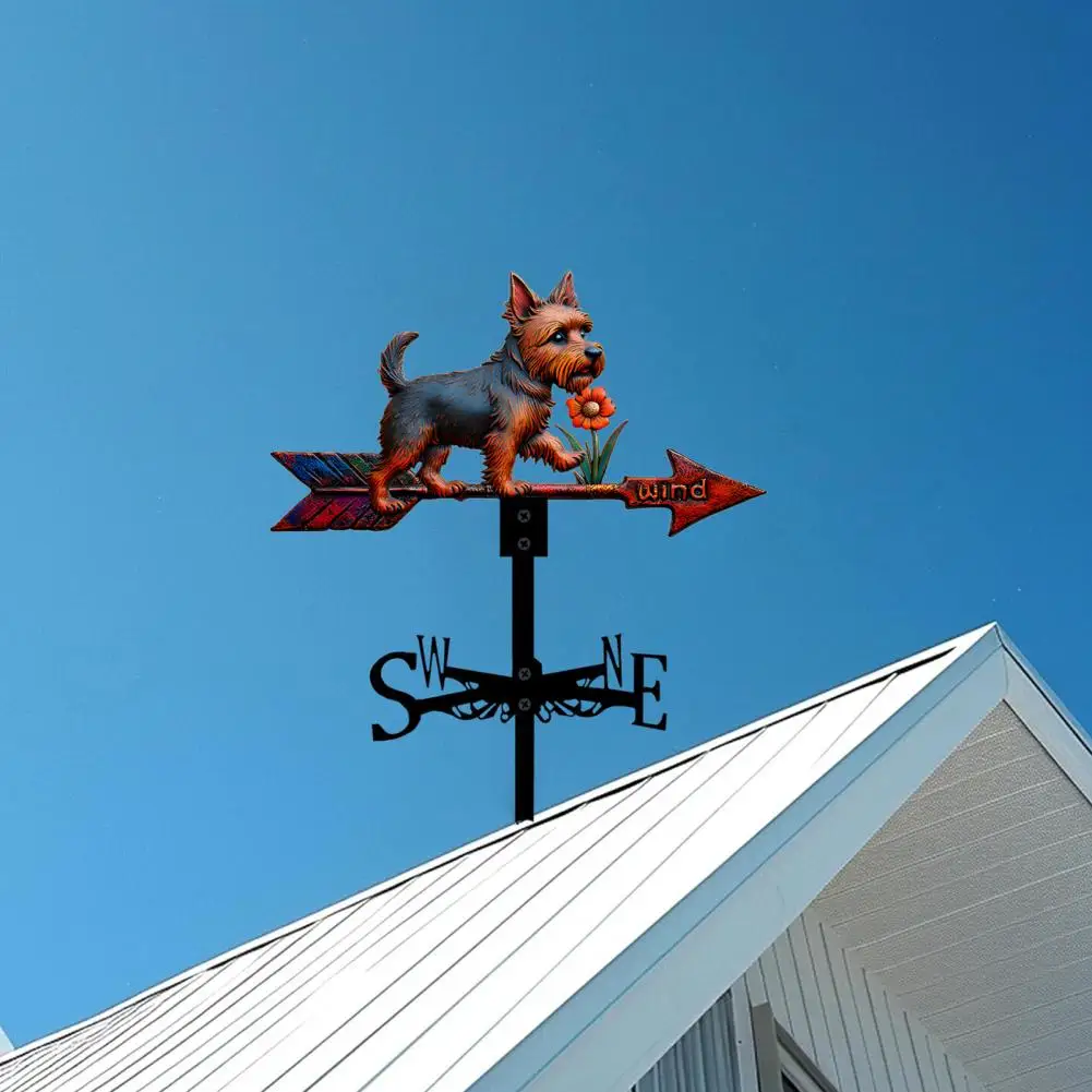 Rustic Yorkie Dog Weather Vane - Metal Wind Indicator for Rooftop & Garden Decor