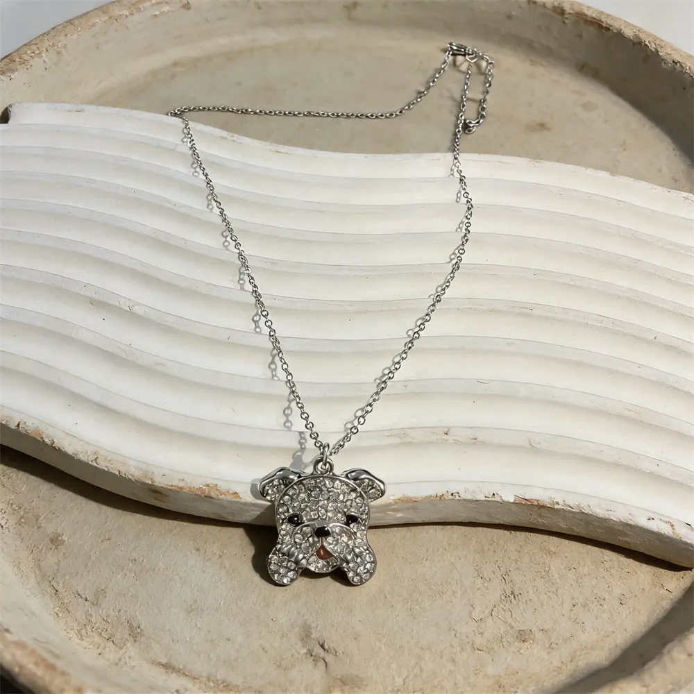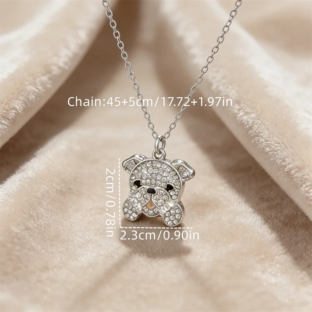 Shy English Bulldog Rhinestone Pendant Necklace for Women