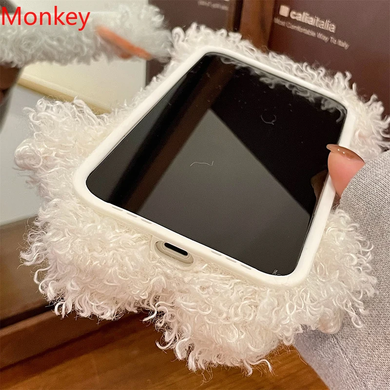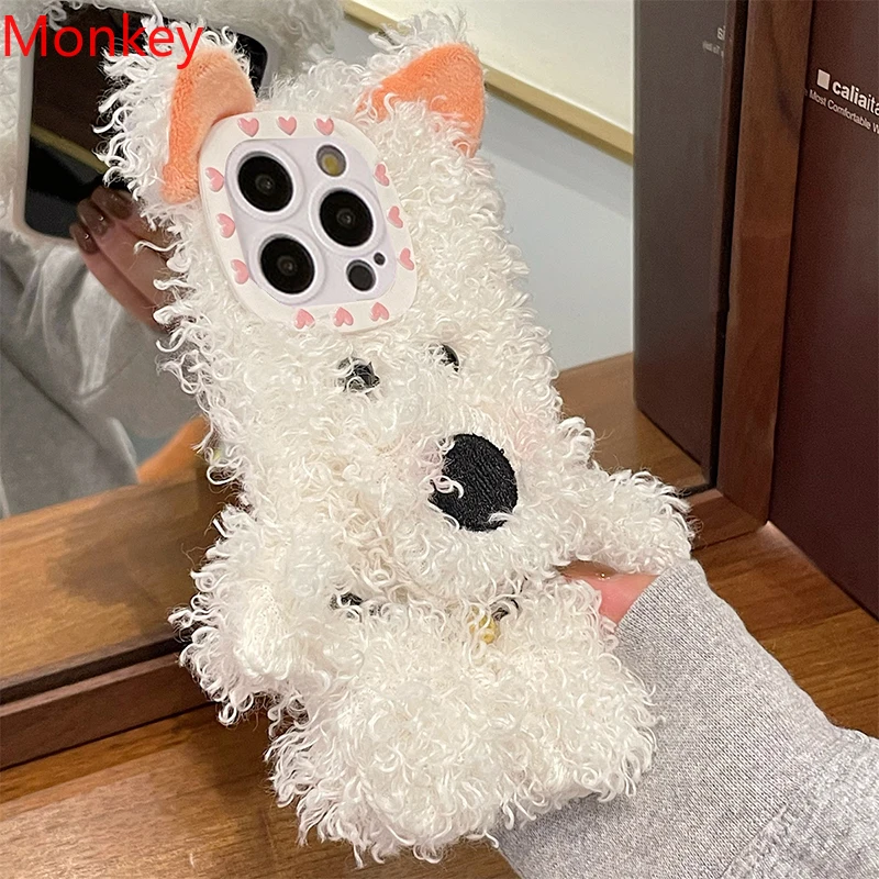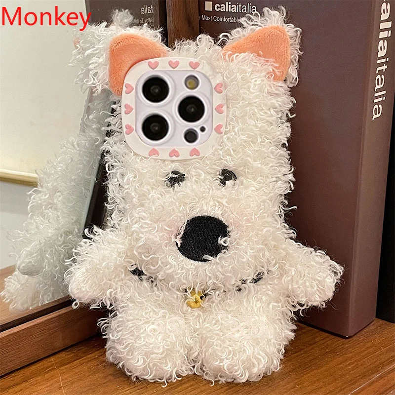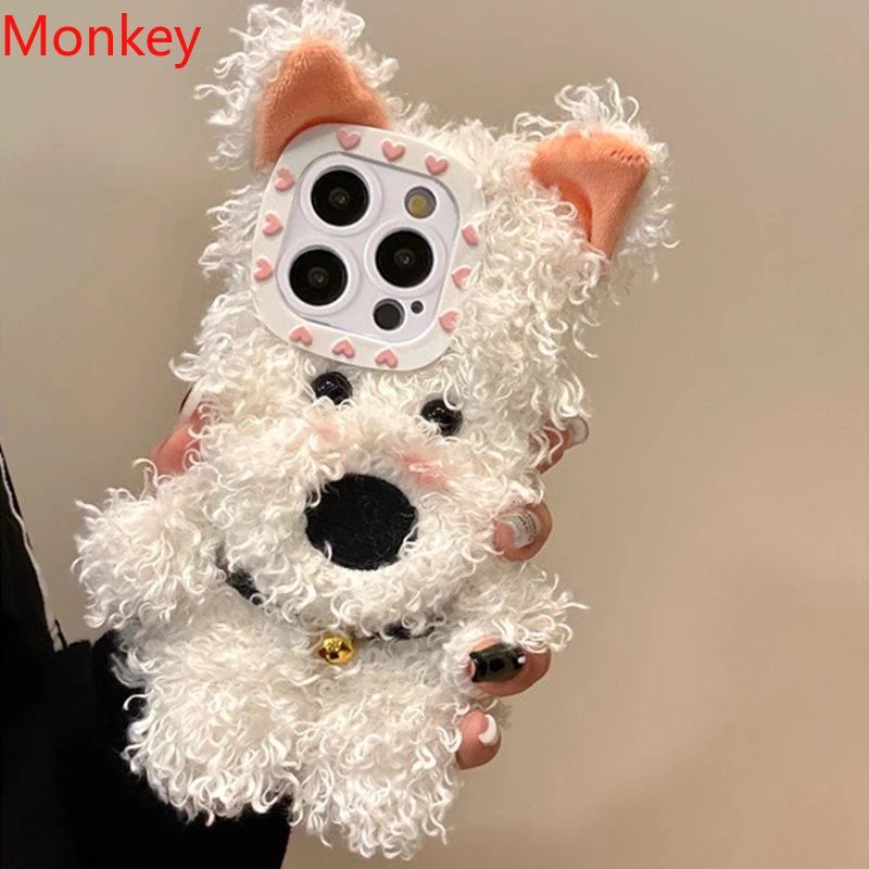 3D Cute West Highland Dog Fluffy Plush Phone Case For iPhone 16 Plus 15 Pro Max 14 13 12 11 Warm Winter Soft Silicone Back Cover