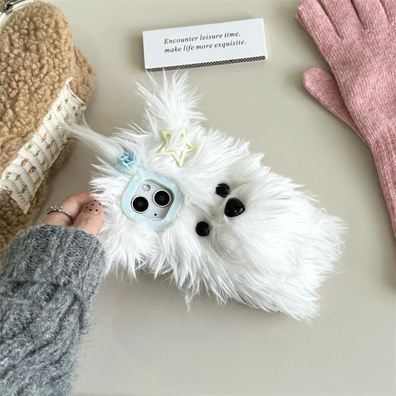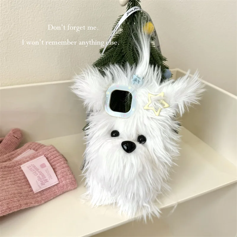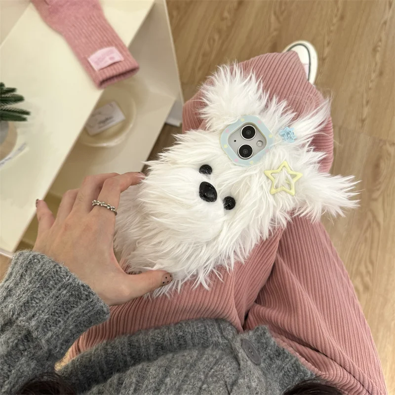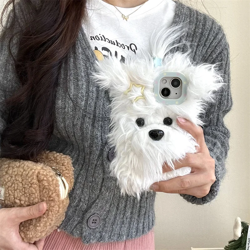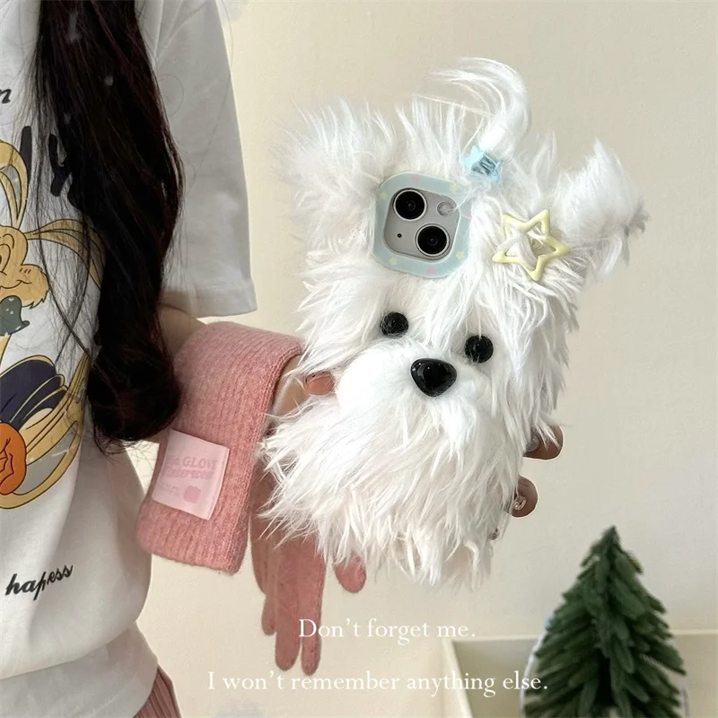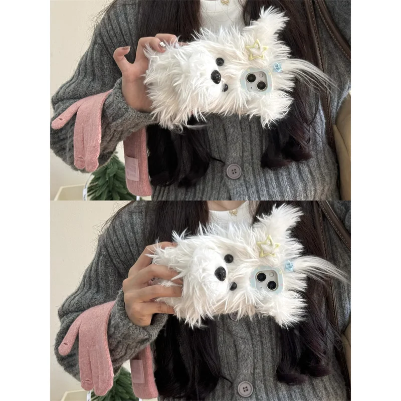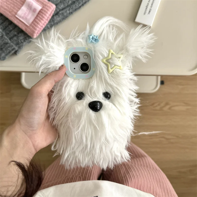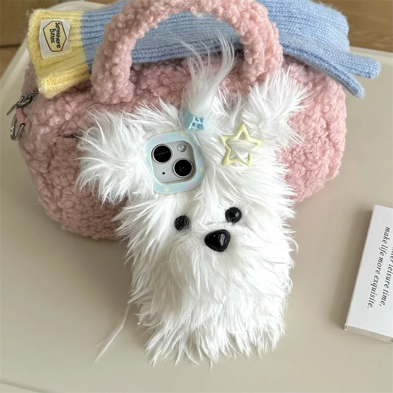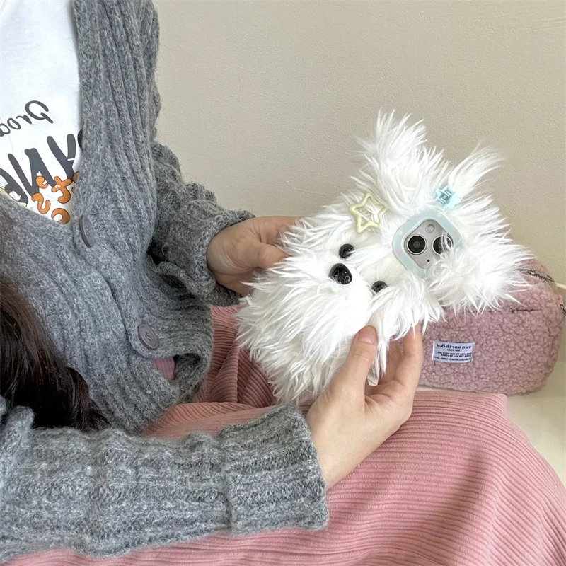 For iPhone 17 16 15 14 13 12 Pro Max Plus Cute Embroidered West Highland White Terrie Plush Phone Case Protection Cover
