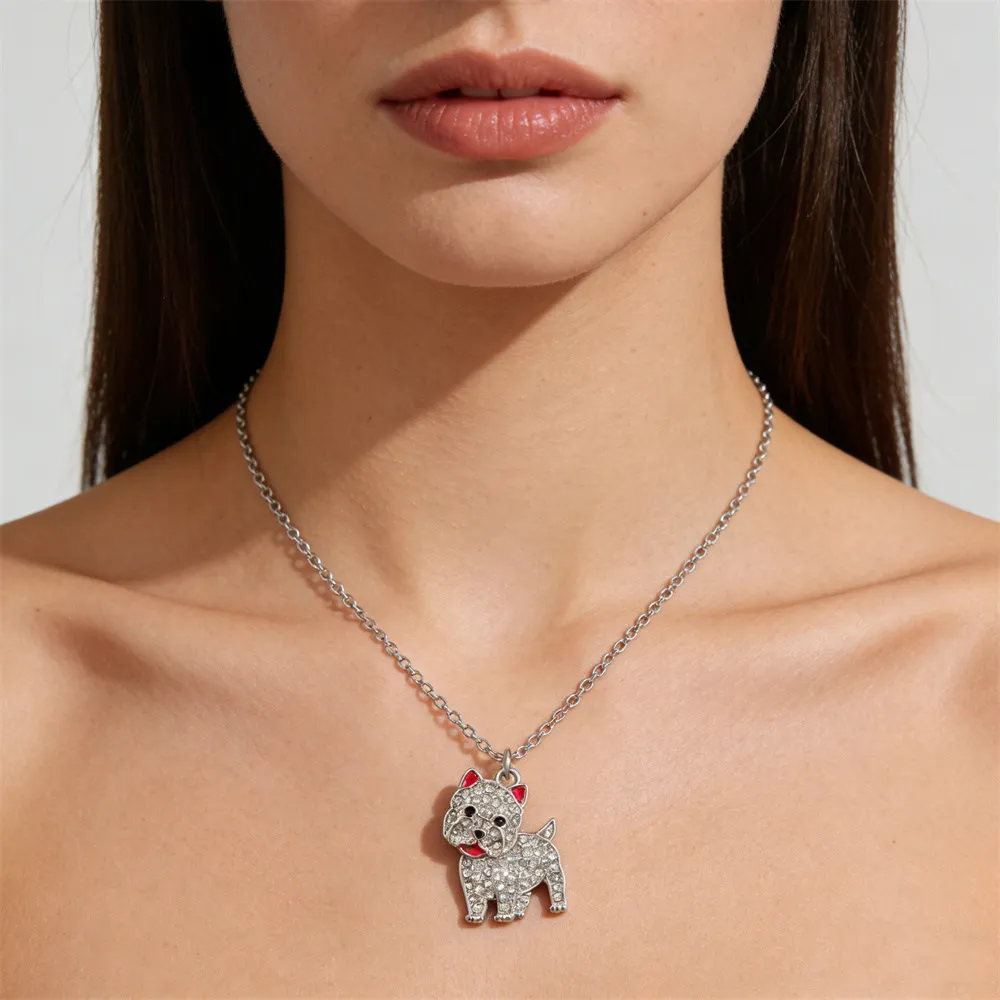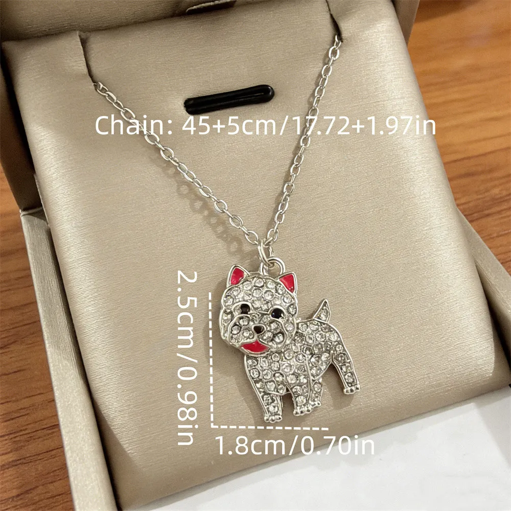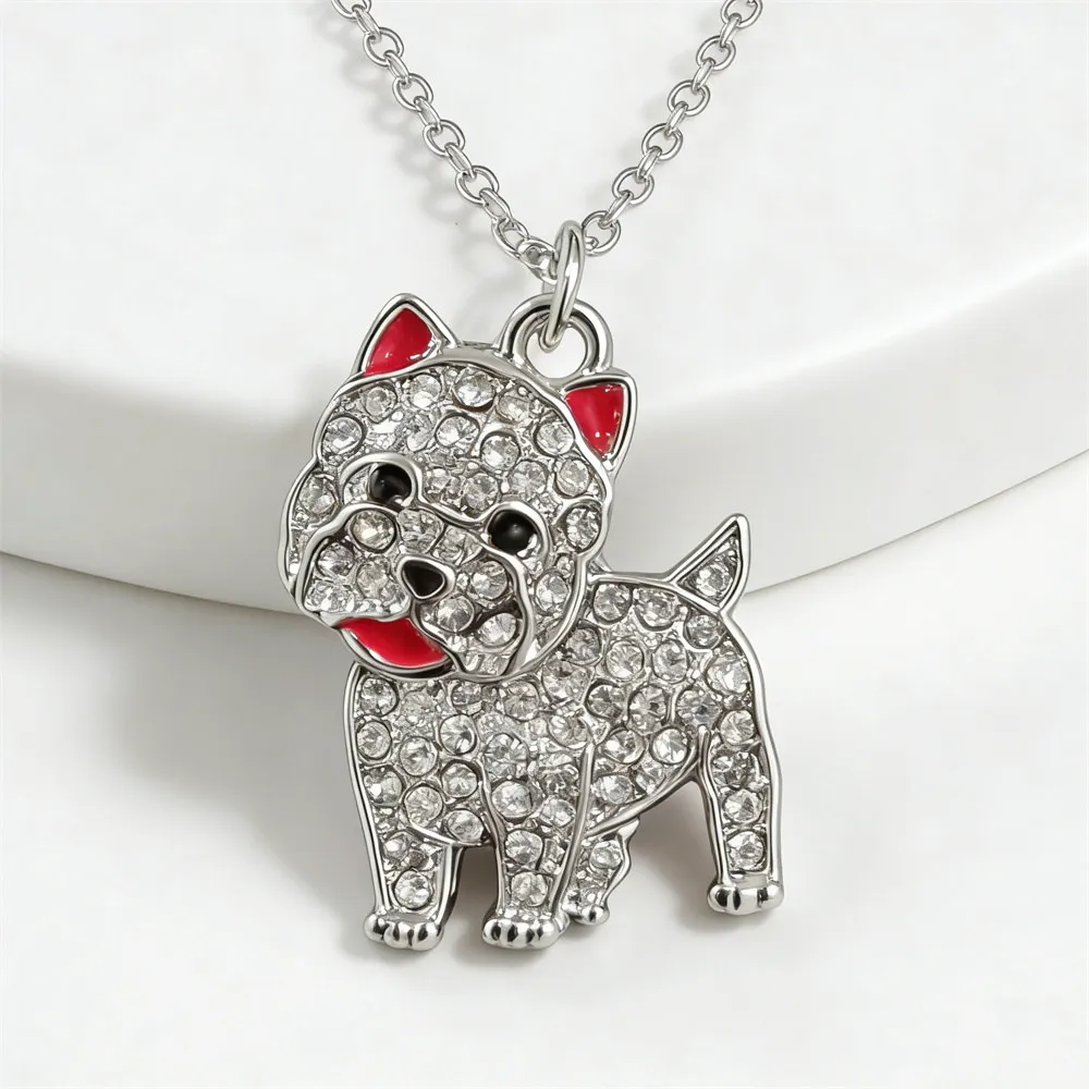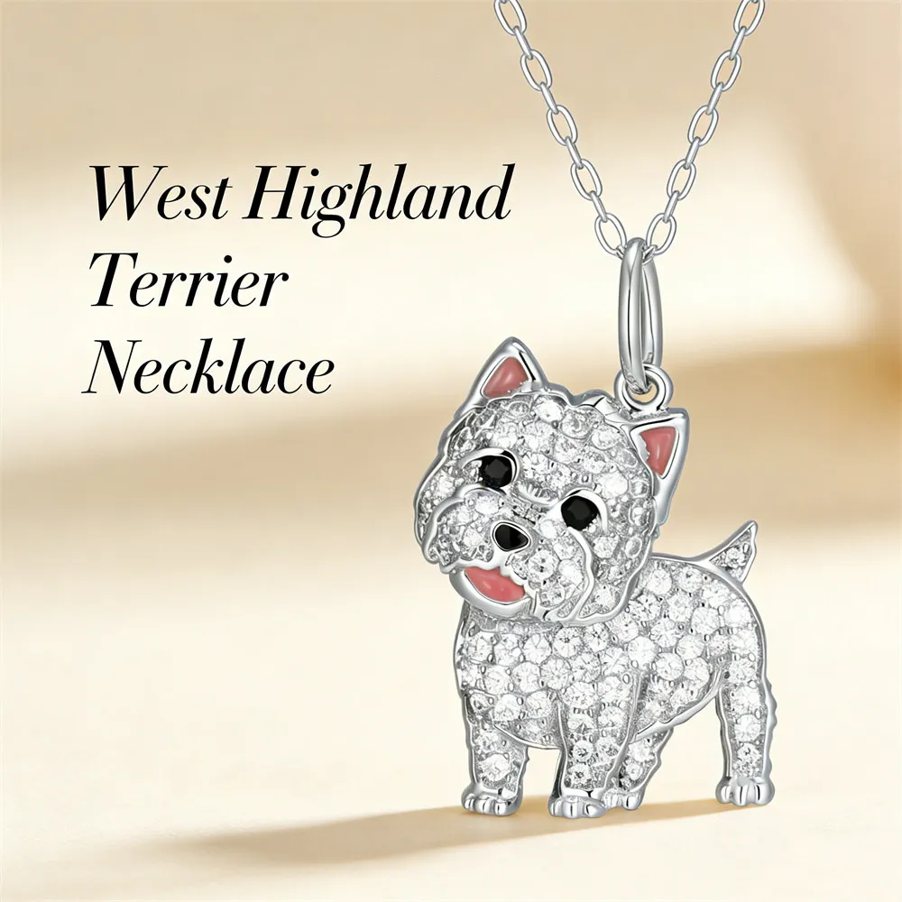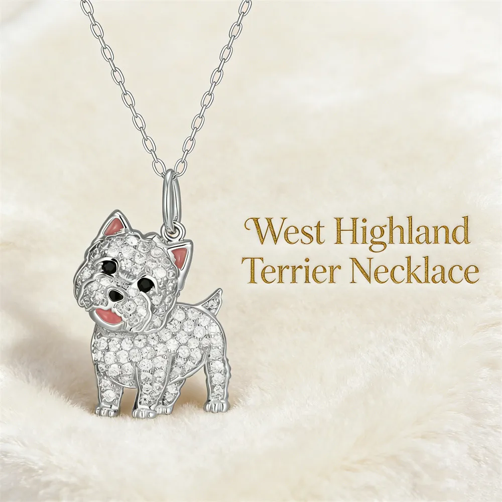 High-quality zinc alloy West Highland Terrier pendant necklace, fully inlaid with sparkling rhinestones. Exquisite cute dog design, durable with long-lasting shine, eye-catching for daily wear, perfect gift for Westie lovers, dog lovers and women.